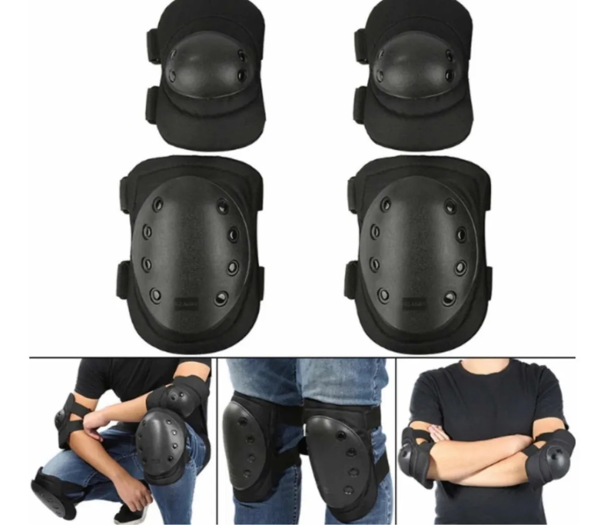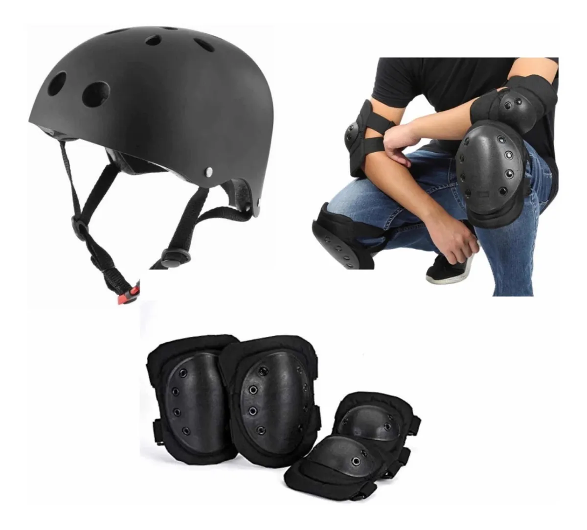 Pack De Rodillera Y Codera + Casco Skate Negro