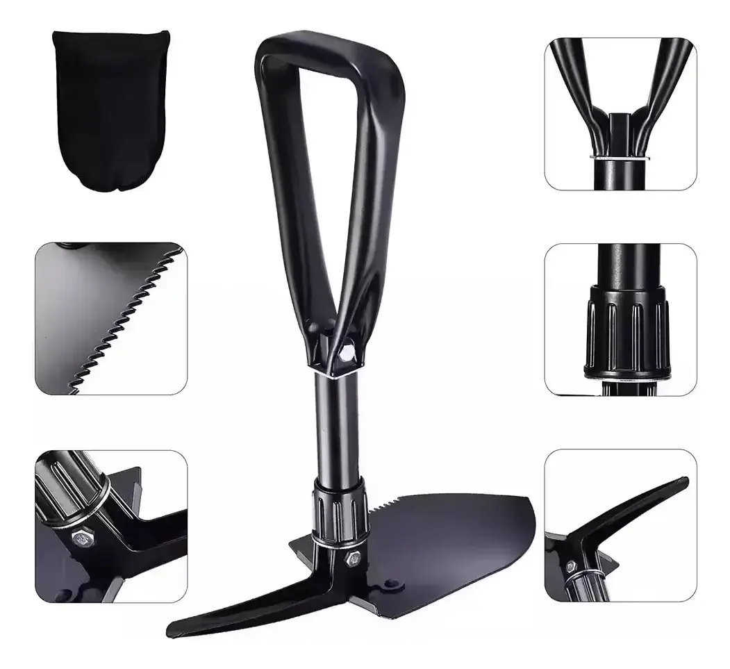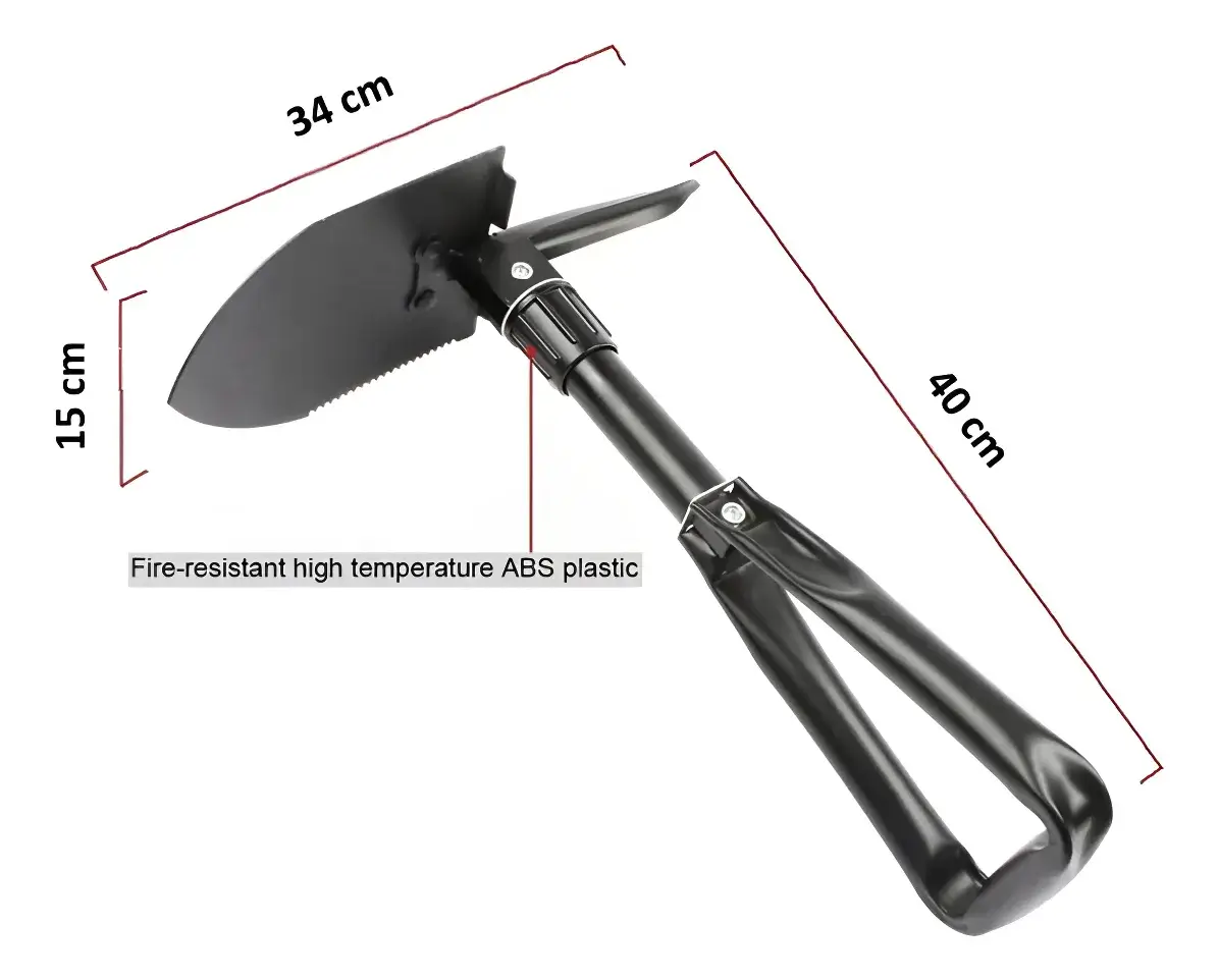 – Pala Multifuncional: Con 60 cm de longitud extendida y picota plegable, es perfecta para cavar, excavar y realizar tareas de jardinería, camping o supervivencia.