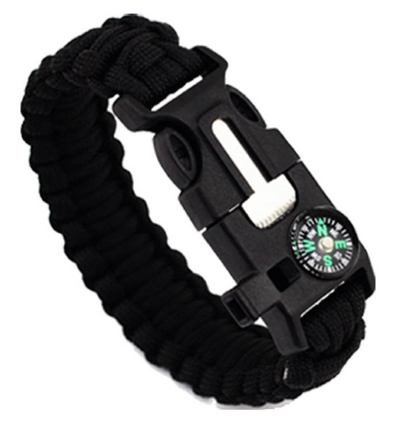 Función: silbato, iniciador de fuego pedernal, cuerdas hacer desmontable, identificar la dirección de la brújula,
