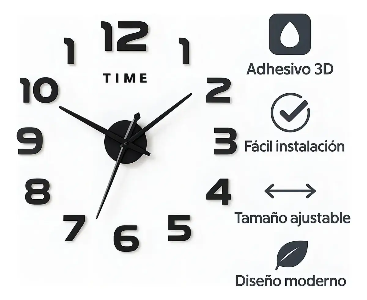 El Reloj De Pared 3D Grande Números Negros Color De La Estructura Negro Decoración Moderno no es un simple accesorio para medir el tiempo, es un protagonista en la decoración de interiores. Este reloj mural decorativo se convierte en un verdadero centro de atención en cualquier ambiente gracias a su diseño elegante, minimalista y contemporáneo. Cada detalle de este reloj de pared 3D grande está pensado para transformar espacios comunes en lugares sofisticados, aportando modernidad y un estilo único que refleja buen gusto y personalidad.