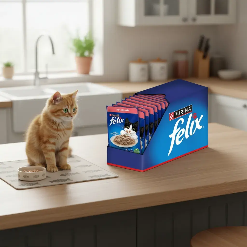 Porque Felix® combina lo mejor: sabor irresistible + nutrición completa en un formato práctico, pensado para el paladar exigente de tu felino y su bienestar diario. Con este pack tendrás la seguridad de ofrecerle siempre frescura, salud y felicidad en cada comida.