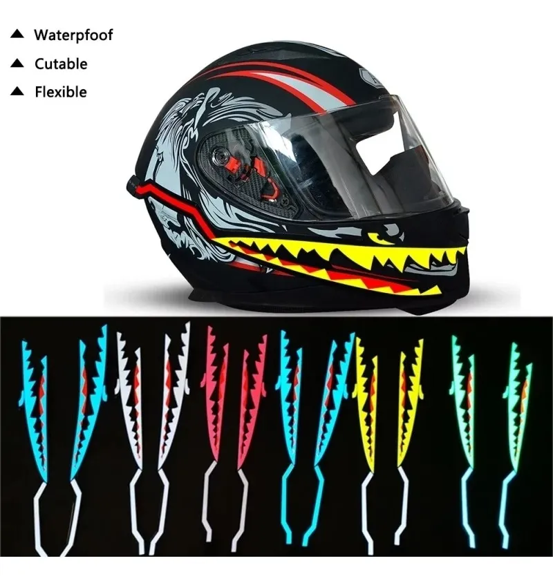 Sticker Con Luz Para Cascos De Moto Tipo Tiburon Adhesivo 3m
